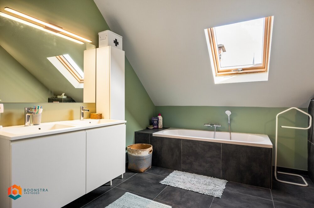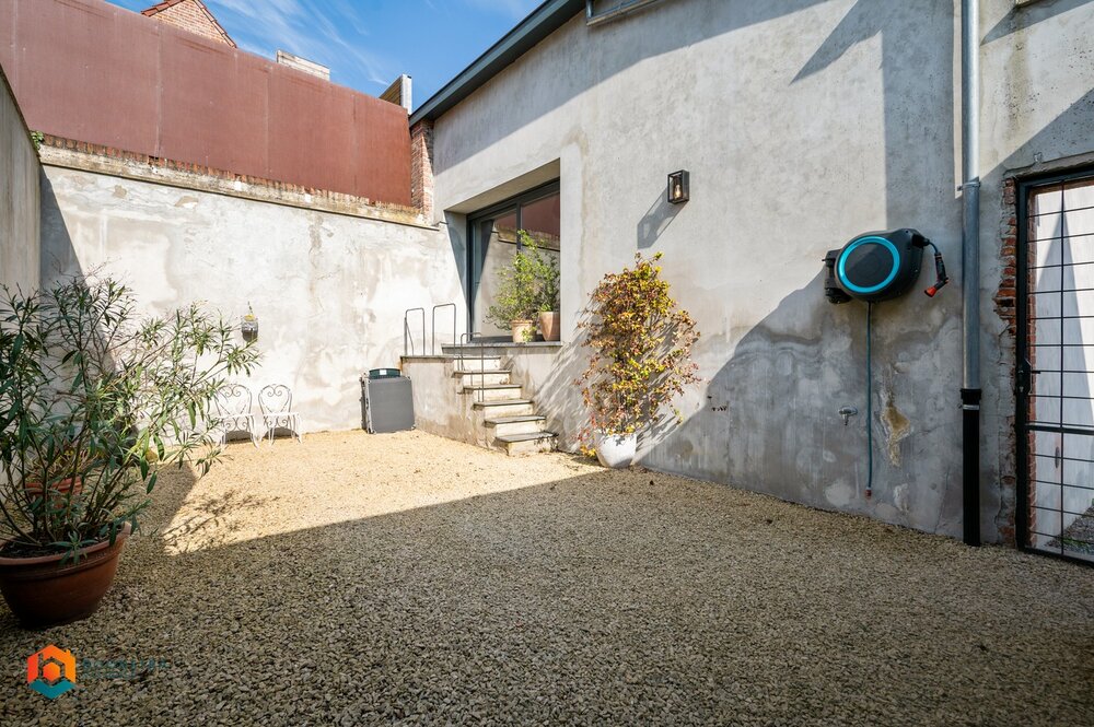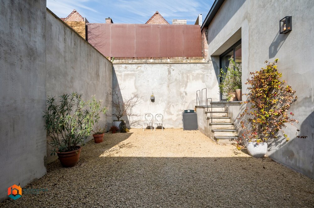 We betreden de woning via de inkomhal met vestiaire en apart gastentoilet. De leefruimte geniet van veel lichtinval door de grote raampartijen en de vide op de eerste verdieping. De woonkamer kan u inrichten met een aparte eetplaats en een gezellige zithoek. De open keuken is mooi geïntegreerd in het geheel en voorzien van de voornaamste toestellen. Verder beschikt het gelijkvloers nog over een stockageruimte/wasplaats. De nachthal op de eerste verdieping geeft ons toegang tot een open bureauruimte en 3 volwaardige slaapkamers. Verder is een ruime badkamer die voorzien is van ligbad, inloopdouche, dubbele lavabo en toilet. Tenslotte is deze woning volledig onderkelderd. Op de netjes aangelegde en zuidwest georiënteerde binnenplaats aan de achterzijde kunt u steeds in alle rust en privacy genieten van het mooie weer. Aan zijkant van de woning beschikt u tot slot nog over een autostaanplaats. Deze woning werd kwalitatief gerenoveerd, is asbestvrij en het EPC bedraagt slechts 110 (label B). De elektriciteit is conform.