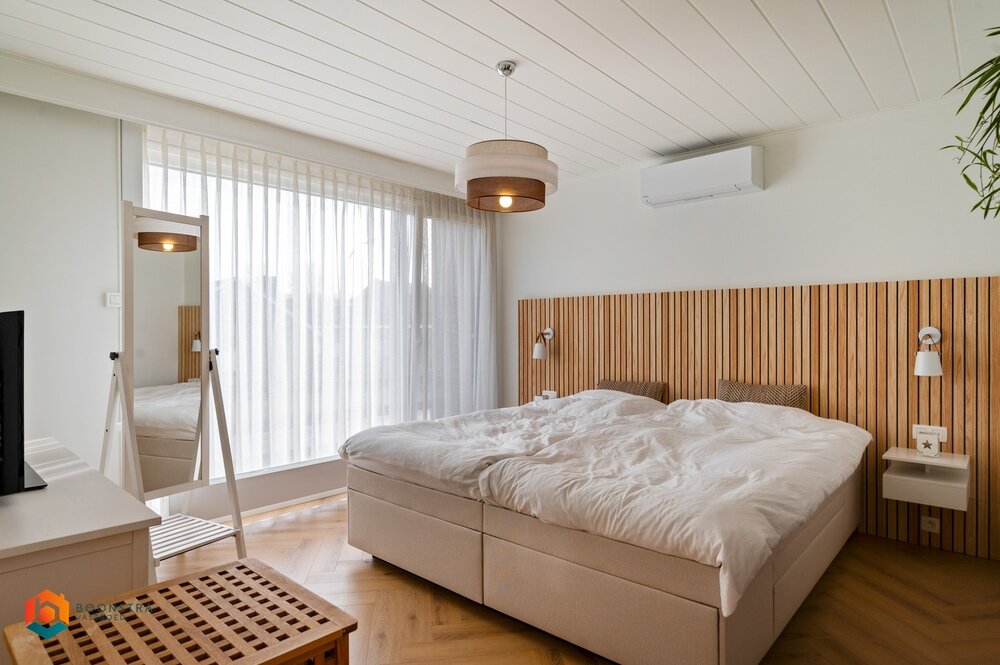 De woning beschikt over drie volwaardige slaapkamers (15m2, 13m2 en 8,5 m2), elk voorzien van elektrische rolluiken en vliegenramen. De grootste slaapkamer is voorzien van airco.