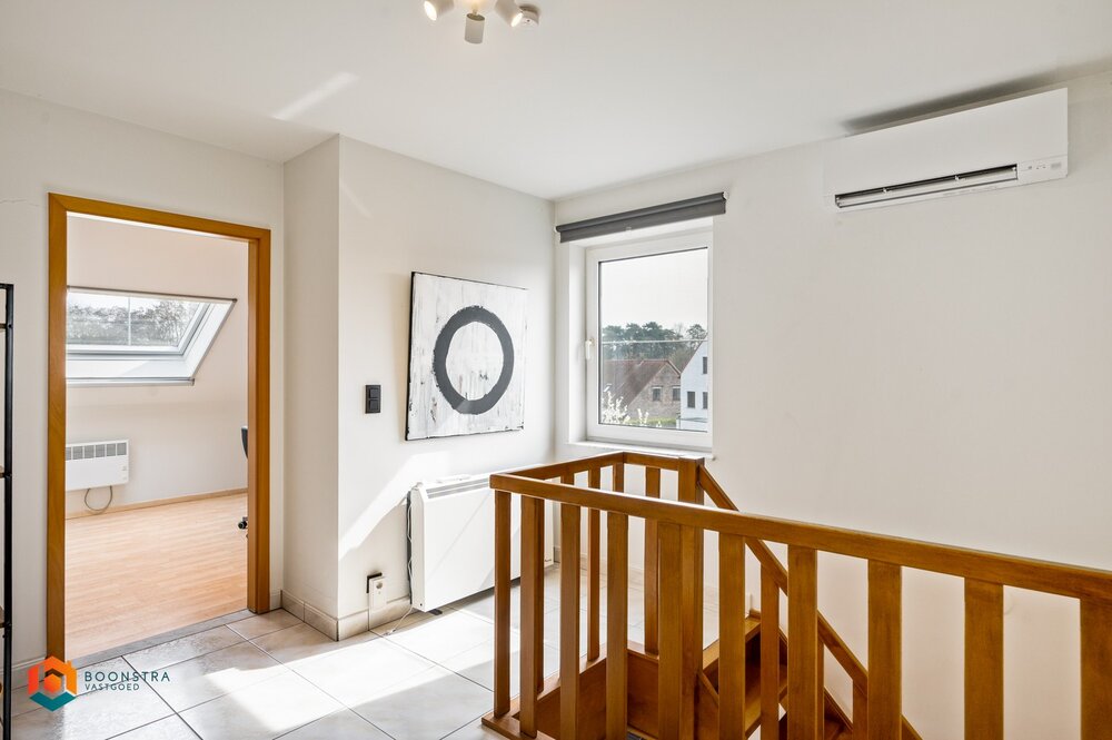 We betreden het appartement via de inkomhal met gastentoilet. De lichtrijke leefruimte kunt u inrichten met een gezellige zithoek en aparte eetplaats. Hieruit heeft u toegang tot het goed georiënteerde terras met berging waar u steeds kan genieten van het mooie weer. Verder beschikt u op de eerste verdieping over een ruime keuken, uitgerust met de voornaamste toestellen. Aansluitend beschikt u over een praktische berging / wasplaats. Via de nachthal op de tweede verdieping bereikt u de 3 slaapkamers, de dressing en de badkamer, uitgerust met een ligbad, douche, toilet en dubbel lavabomeubel. Tenslotte beschikt u nog over een zolder dewelke u voldoende opbergmogelijkheden biedt. Dankzij de airco-unit in de woonkamer en nachthal kan u het ganse appartement koel houden op de warme zomerdagen. De autostaanplaats en 2 garageboxen zijn inbegrepen in de vraagprijs.