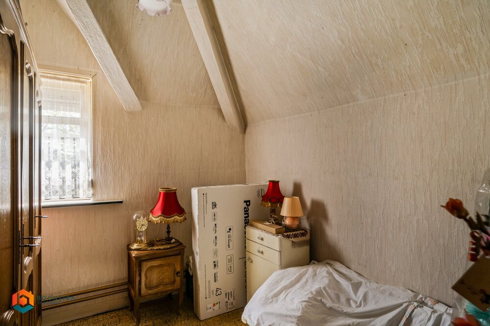 We betreden de woning via de inkomhal. De woonkamer kan u inrichten met een gezellige zithoek en eetplaats. In de ruime aanpalende kamer kan u de keuken installeren. Verder omvat het gelijkvloers nog een ruimte waar een berging kan worden ingericht, een te renoveren badkamer met douche, een aparte toilet en een ruime werkplaats. Via de woonkamer neemt u de trap naar de 1ste verdieping waar de nachthal toegang geeft tot 3 slaapkamers. Tot slot beschikt de woning ook over een aan te leggen tuin waarin u steeds in alle rust en privacy kan genieten van het mooie weer.