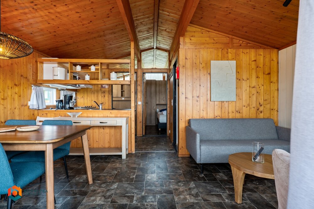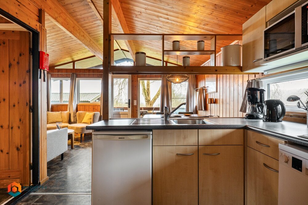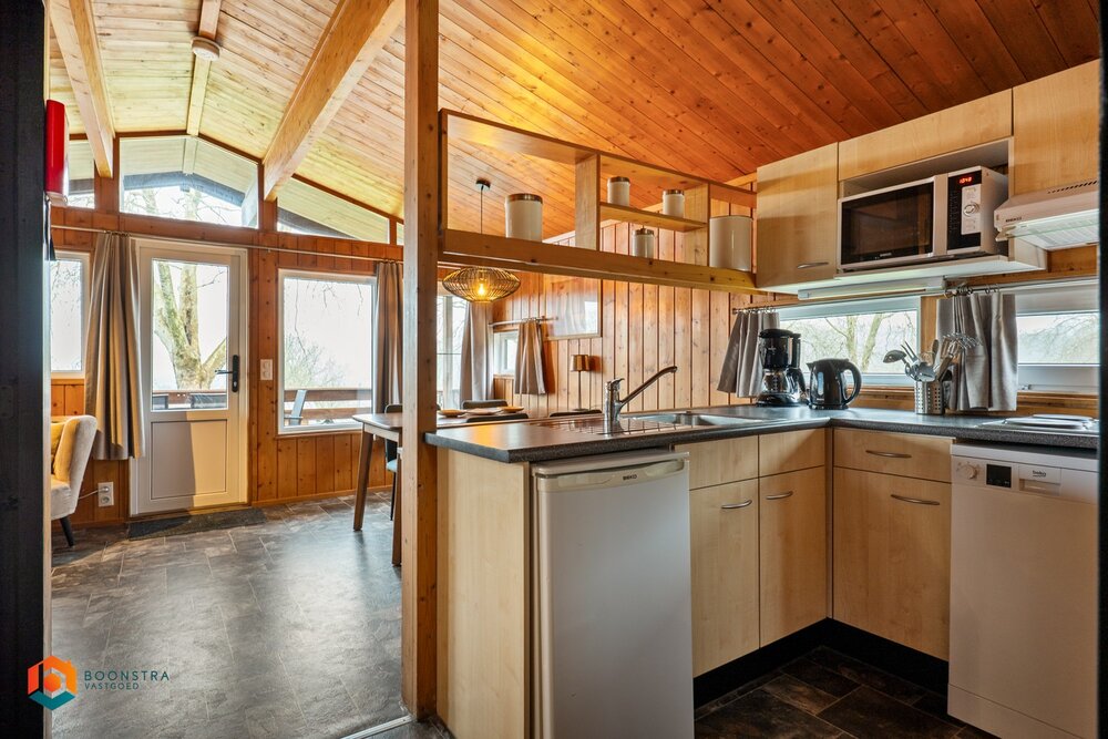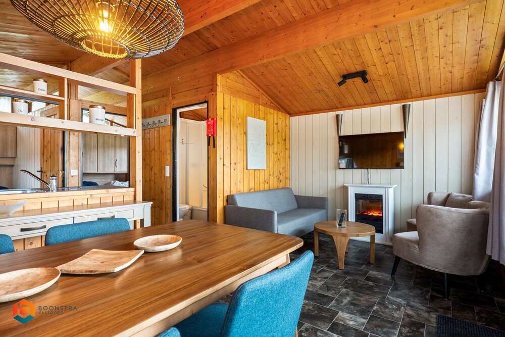 Dit vrijstaande vakantiehuisje is geschikt voor maximaal 4 personen. De woonkamer is sfeervol ingericht en beschikt over een zithoek met haard en televisie, evenals een eethoek. De open keuken is volledig uitgerust met onder meer een filterkoffiezetapparaat, een koelkast met vriesvak, een combimagnetron, een vaatwasser en een waterkoker. Het chalet beschikt over 2 slaapkamers en een badkamer met douche, wastafel en toilet. Buiten bevindt zich een omheinde veranda met tuinmeubilair en er is parkeergelegenheid voor één auto in de nabijheid van de woning.