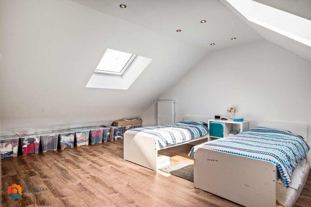 Via de nachthal op de eerste verdieping bereikt u 3 slaapkamers en een bureau / dressing. De zolderverdieping is volledig afgewerkt als 4e slaapkamer en kan u zelfs opsplitsen in 2 kamers. Ten slotte is er nog een kelder aanwezig.