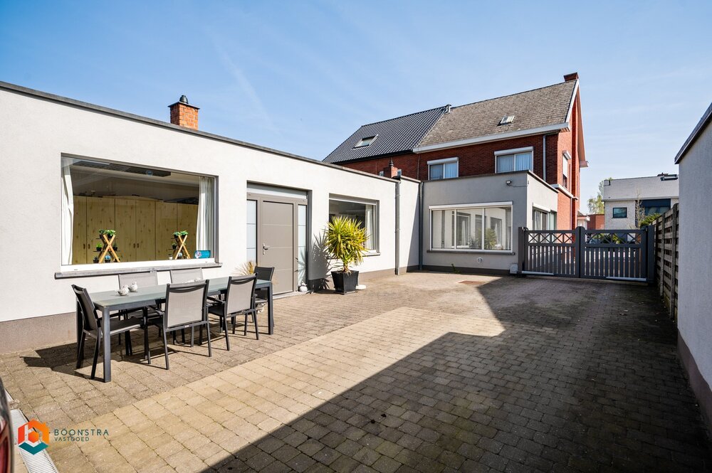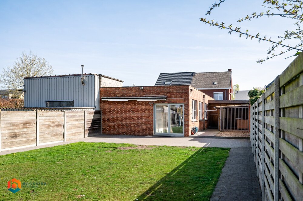Dit pand beschikt verder nog over een achtergelegen bijgebouw van zo'n 100 m² dat zowel toegankelijk is via een aparte ingang alsook via een directe doorgang vanuit de woning. Het bijgebouw kan perfect ingericht worden als werkplaats, magazijn en/of atelier. In de zuidwest georiënteerde en omheinde tuin kan u tot slot in alle rust genieten van het mooie weer.