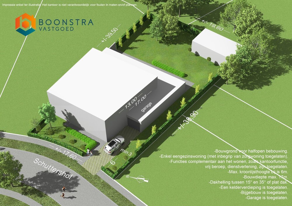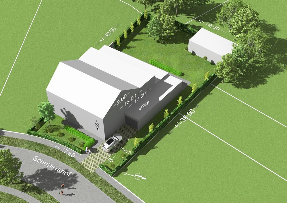 Deze bouwgrond biedt tal van stedenbouwkundige mogelijkheden. De render geeft een indicatieve weergave van een mogelijke woning volgens de geldende bouwvoorschriften conform de verkaveling.